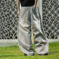 Custom Clothing Manufacturer Dirty Wide Leg Leisure Jeans
