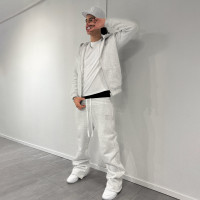 Embroidered logo 100% cotton zipper hoodie set, pure cotton is breathable, the embroidery is exquisite and unique, and the zipper is neat. The hood is casual and the set is versatile, suitable for daily life and light sports, comfortable and comfortable.