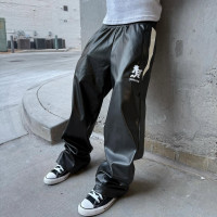 Custom Clothing Manufacturers Embroidery Logo Color-blocked leather pants