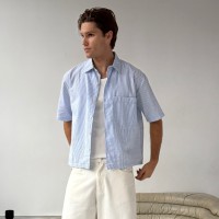 This embroidered logo striped shirt is made of 100% pure cotton, offering a soft, breathable feel. The classic stripes are versatile and easy to style, while the embroidered logo adds a touch of sophistication. It's perfect for both work and casual wear.