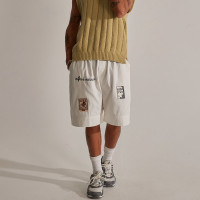 Embroidered logo 100% cotton shorts, made of soft and breathable pure cotton fabric, featuring an exquisite and distinctive embroidered logo, and a loose fit for versatile summer styling.